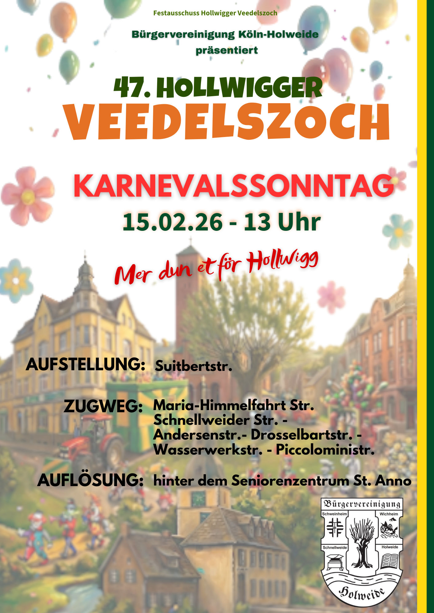 - Traditionell geht auch unsere Bürgervereinigung Köln-Holweide als Veranstalter mit unserem Festwagen mit.